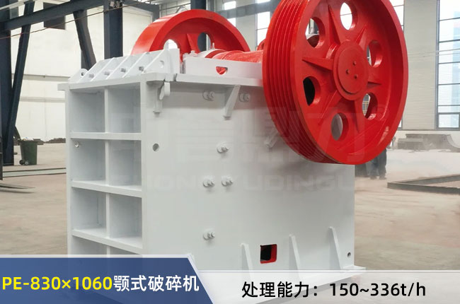 PE-830×1060鄂式破碎機進料粒度≤650mm,出料160-220mm,時產(chǎn)量150-336噸,電機功率為110kw(8級),設備含電機重量為30.7噸。