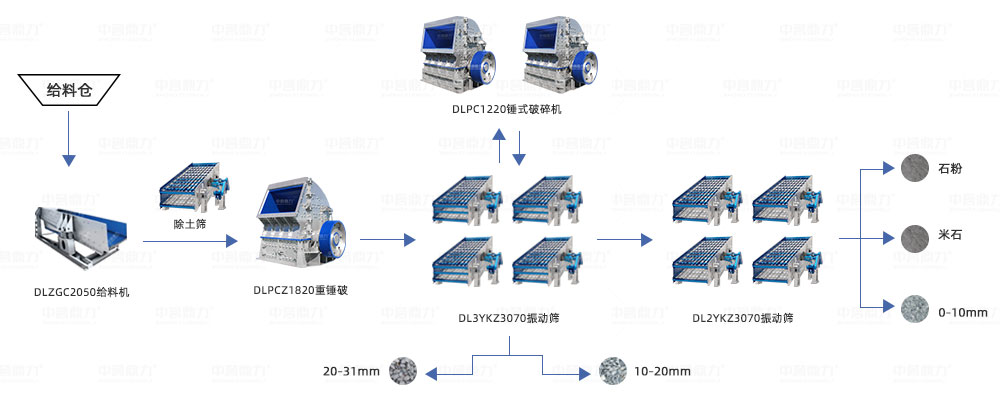 | 50畝 | 6000萬(wàn)元 | DLPCZ1620重型錘式破碎機(jī) | 1-3 1-2 0-5 機(jī)制砂 |